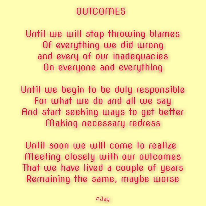 Most times, we see everything wrong with what we have said or done, yet we have all the reasons in the world to give for it. We blame the government, the church, our next neighbours, family, friends, etc for things we can decide to do better.