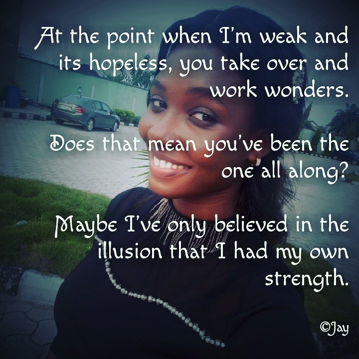 I realized that we only know that He is the one when it looks like we’re weak, but He has been the one all along willing and even working in us ( Phil. 2:3 ), that’s why when the physical strength is exhausted, everything doesn’t just end, because there is a bigger factor than the physical involved.