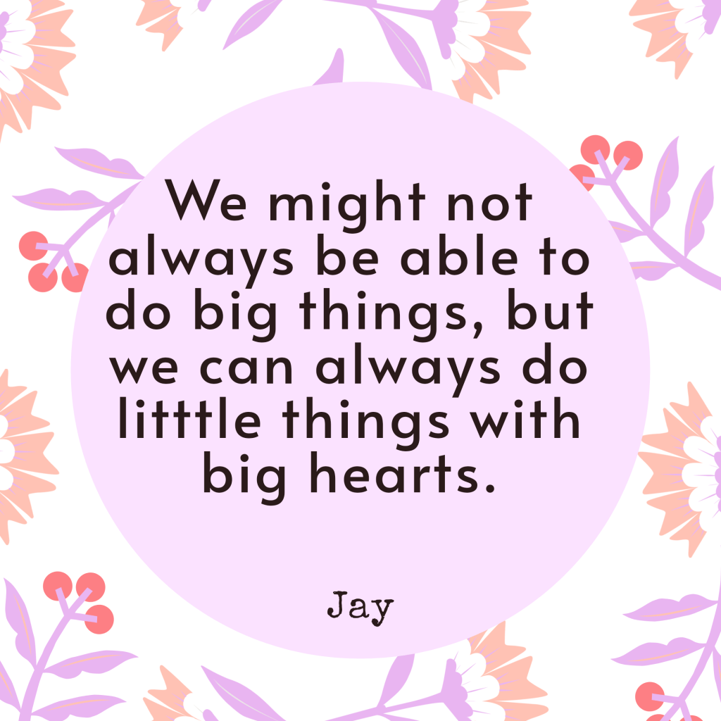 We might not always be able to do big things, but we can always do litttle things with big hearts.